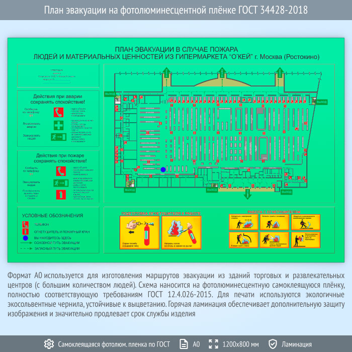 План эвакуации на фотолюминесцентной плёнке ГОСТ 34428-2018 (А0 формат) в Верее купить