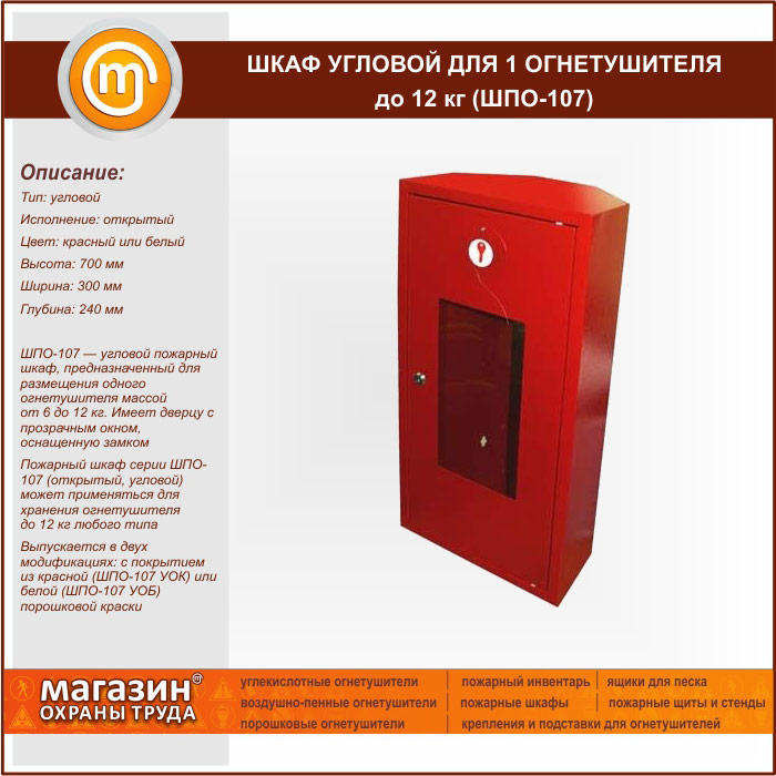 Шкаф пожарный ШПО-107 угловой для 1 огнетушителя до 12 кг в Верее купить
