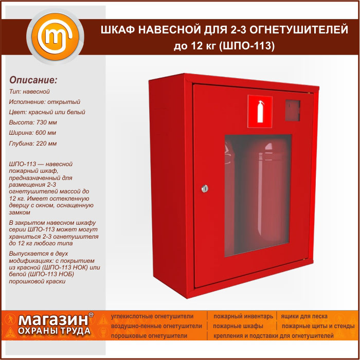 Шкаф пожарный ШПО-113 навесной для 2-3 огнетушителей до 12 кг в Верее купить
