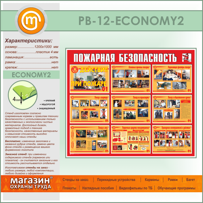 Стенд «Пожарная безопасность. Действия при пожаре» (PB-12-ECONOMY2) в Верее купить