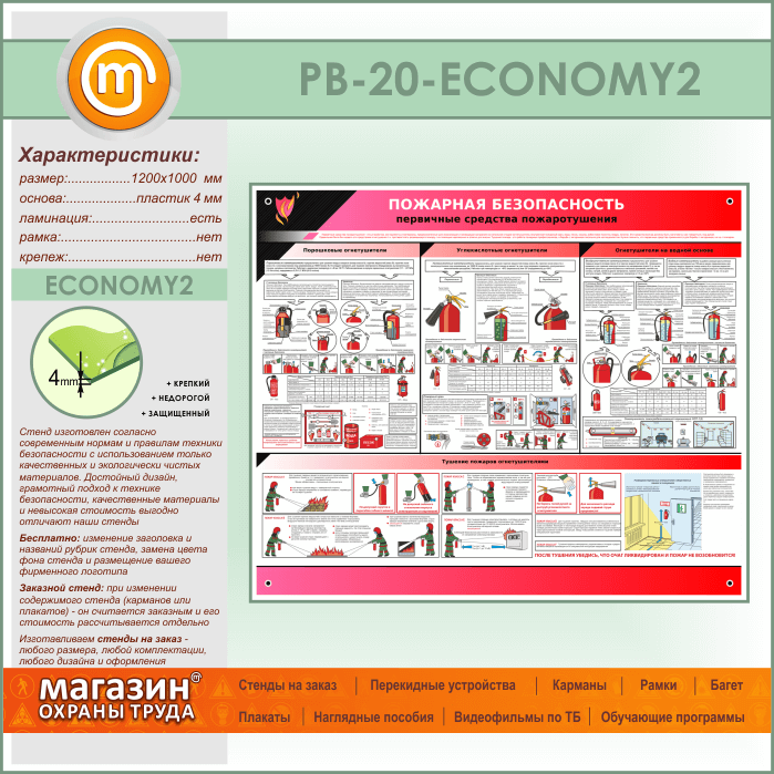 Стенд «Пожарная безопасность. Первичные средства пожаротушения» (PB-20-ECONOMY2) в Верее купить