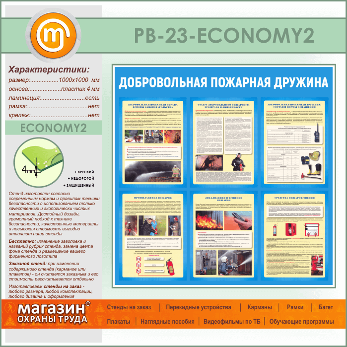 Стенд «Добровольная пожарная дружина» (PB-23-ECONOMY2) в Верее купить