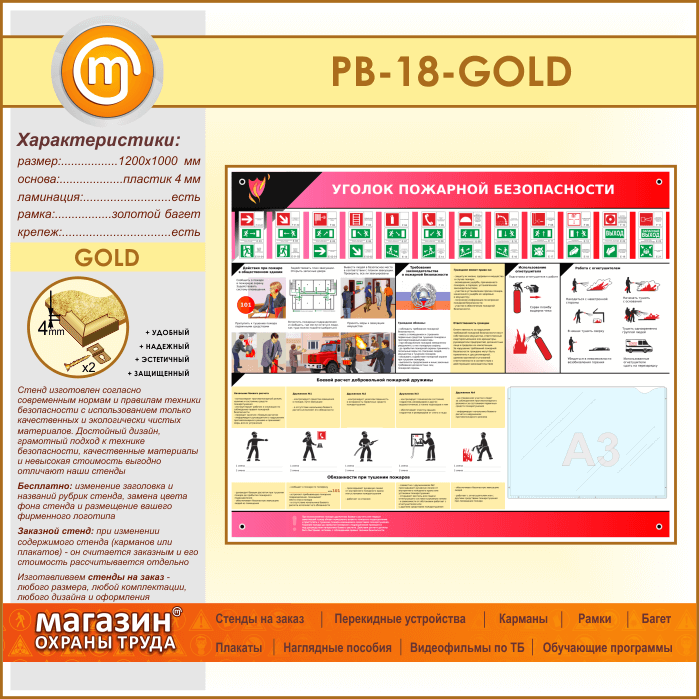 Стенд «Уголок пожарной безопасности» с карманом А3 формата (PB-18-GOLD) в Верее купить