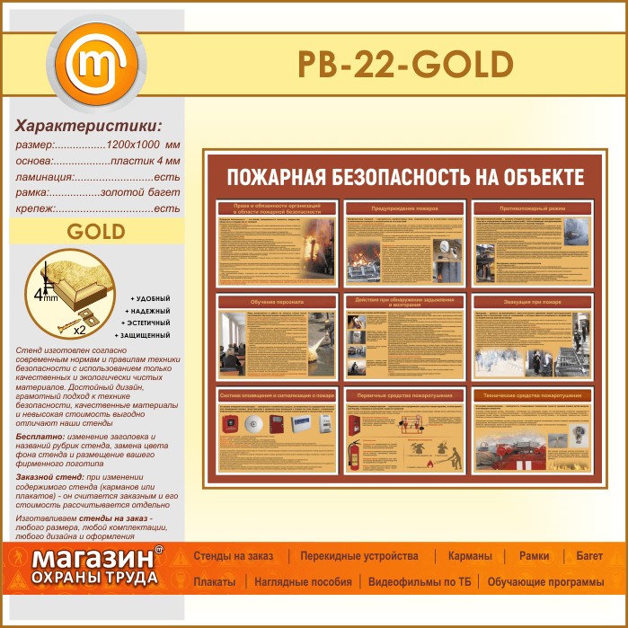 Стенд «Пожарная безопасность на объекте» (PB-22-GOLD) в Верее купить