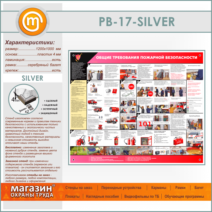 Стенд «Общие требования пожарной безопасности» (PB-17-SILVER) в Верее купить