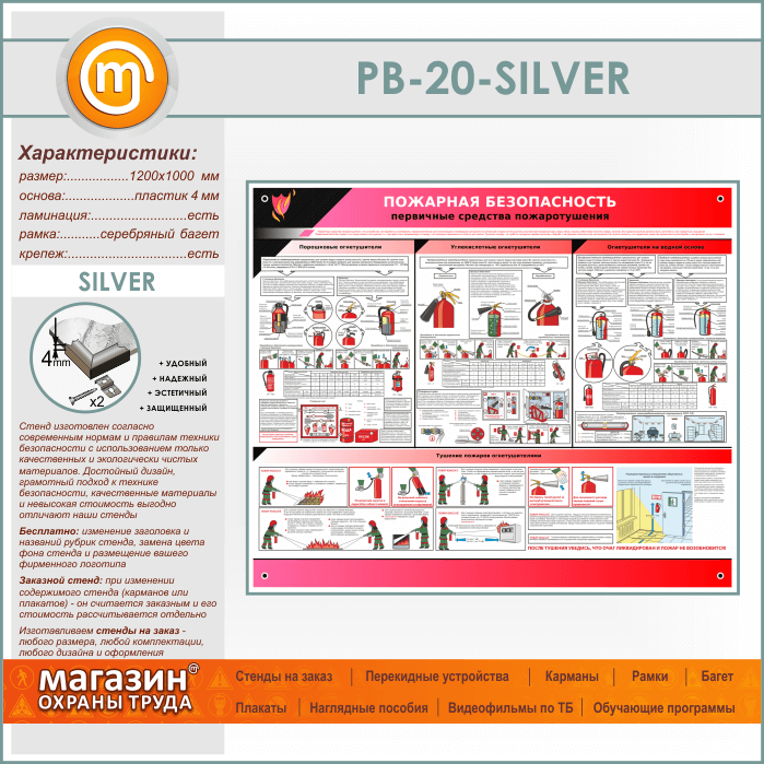 Стенд «Пожарная безопасность. Первичные средства пожаротушения» (PB-20-SILVER) в Верее купить