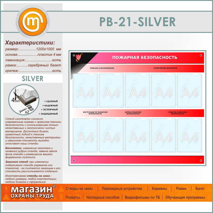 Стенд «Пожарная безопасность» с 10 карманами (PB-21-SILVER) в Верее купить
