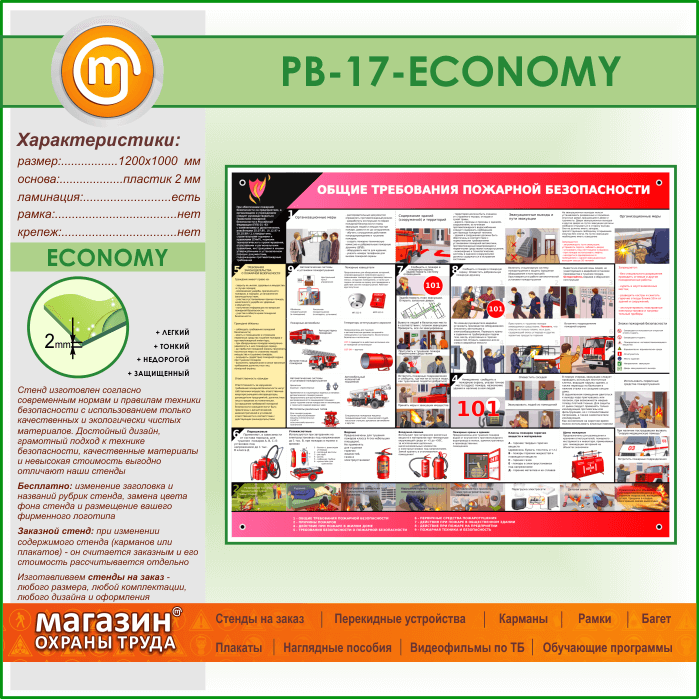 Стенд «Общие требования пожарной безопасности» (PB-17-ECONOMY) в Верее купить
