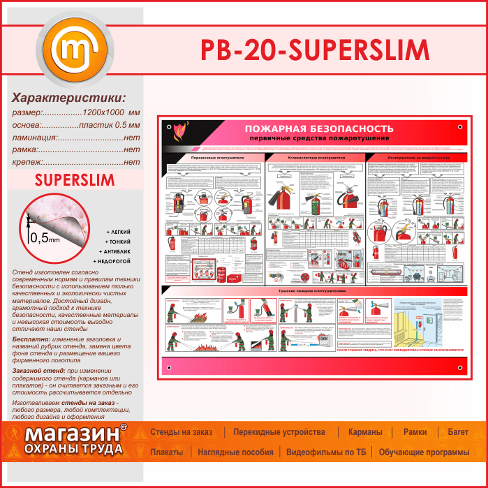 Стенд «Пожарная безопасность. Первичные средства пожаротушения» (PB-20-SUPERSLIM) в Верее купить