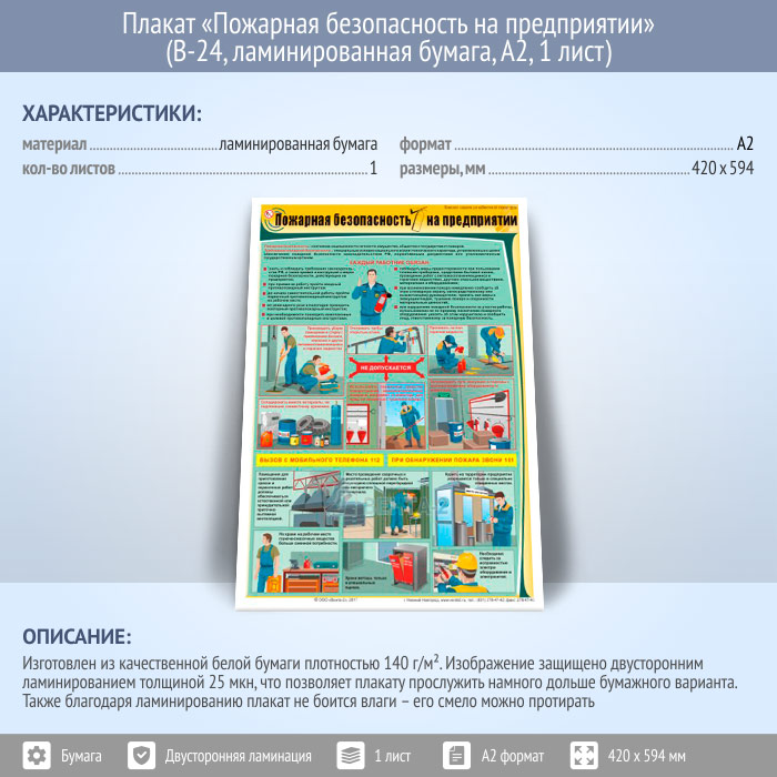 Плакат «Пожарная безопасность на предприятии» (В-24, ламинированная бумага, А2, 1 лист) в Верее купить