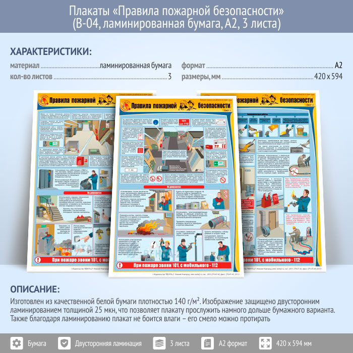 Плакаты «Правила пожарной безопасности» (В-04, ламинированная бумага, А2, 3 листа) в Верее купить