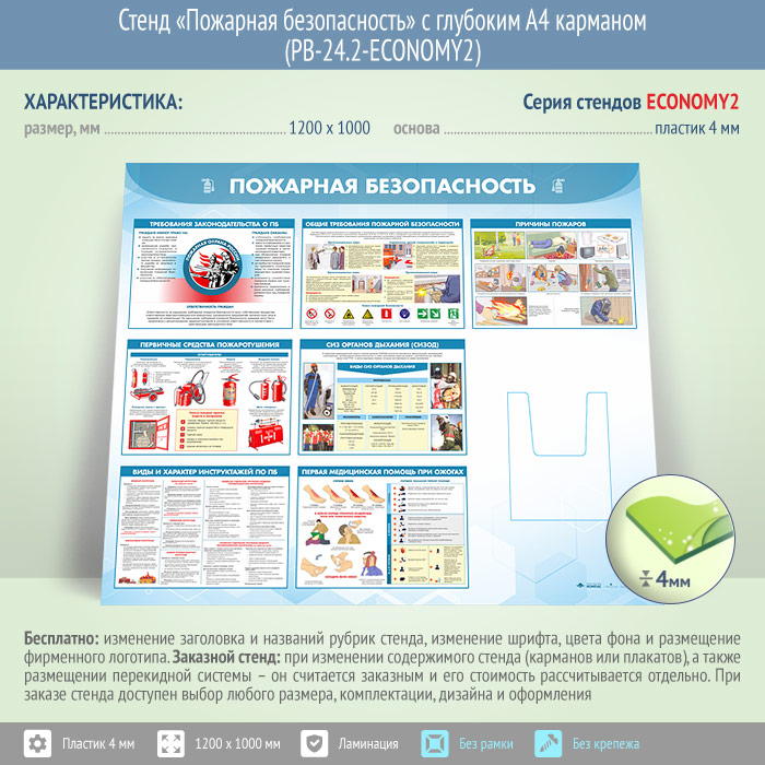 Стенд «Пожарная безопасность» с глубоким А4 карманом (PB-24.2-ECONOMY2) в Верее купить