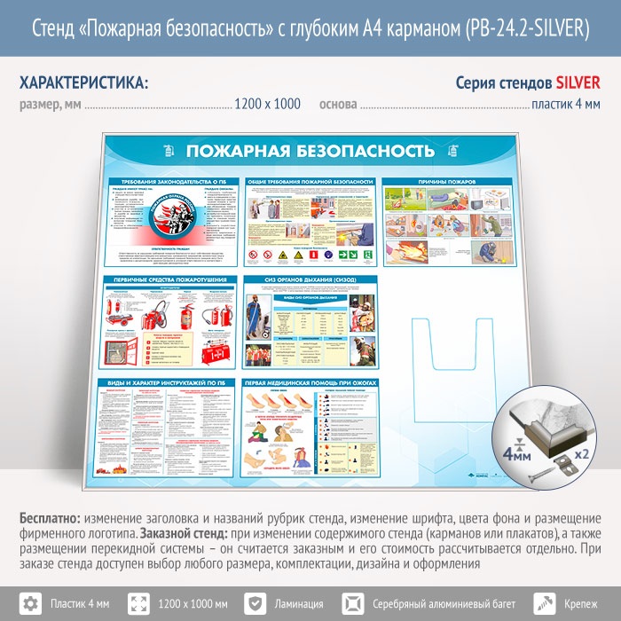 Стенд «Пожарная безопасность» с глубоким А4 карманом (PB-24.2-SILVER) в Верее купить