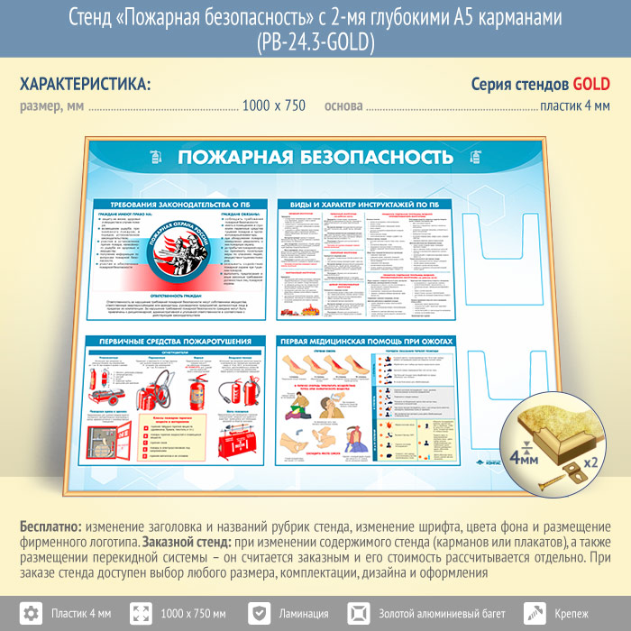Стенд «Пожарная безопасность» с 2-мя глубокими А5 карманами (PB-24.3-GOLD) в Верее купить
