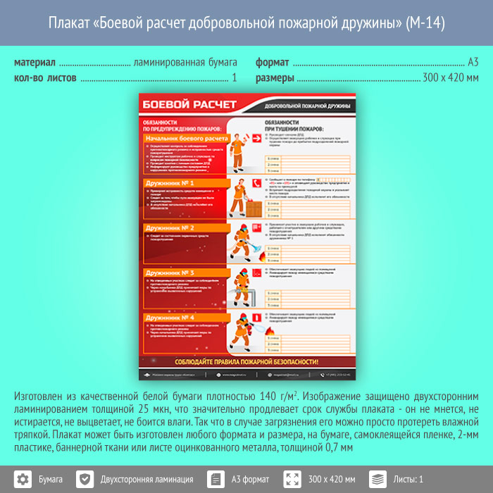 Плакат «Боевой расчет добровольной пожарной дружины» (М-14, ламинированная бумага, А3, 1 лист) в Верее купить