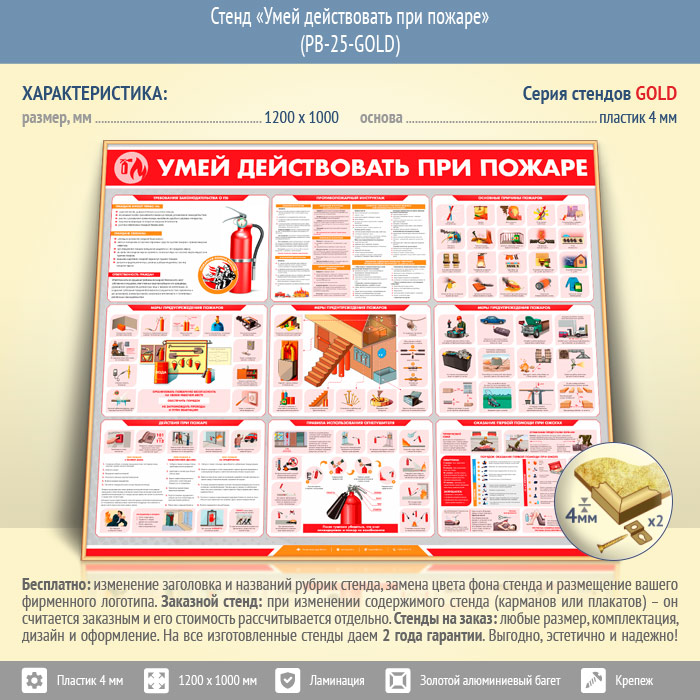 Стенд «Умей действовать при пожаре» (PB-25-GOLD) в Верее купить