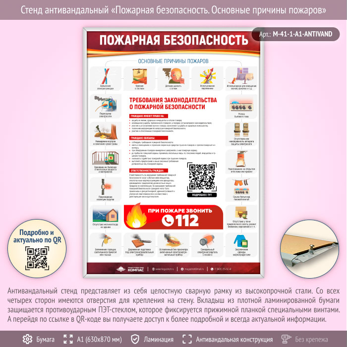 Стенд антивандальный «Пожарная безопасность. Основные причины пожаров» (M-41-1-А1-ANTIVAND) в Верее купить