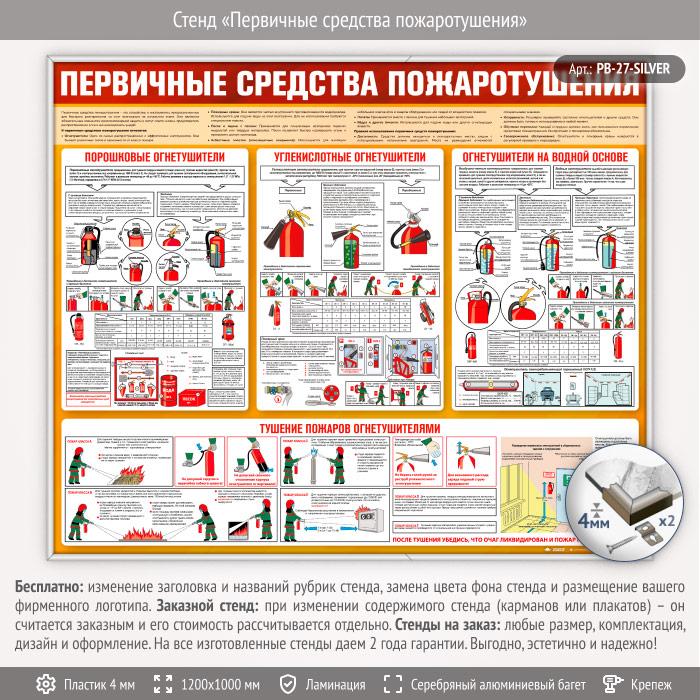 Стенд «Первичные средства пожаротушения» (PB-27-SILVER) в Верее купить