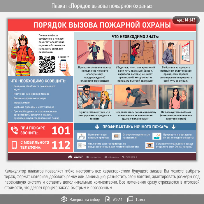 Плакат «Порядок вызова пожарной охраны» с QR (М-143, 1 лист) в Верее купить