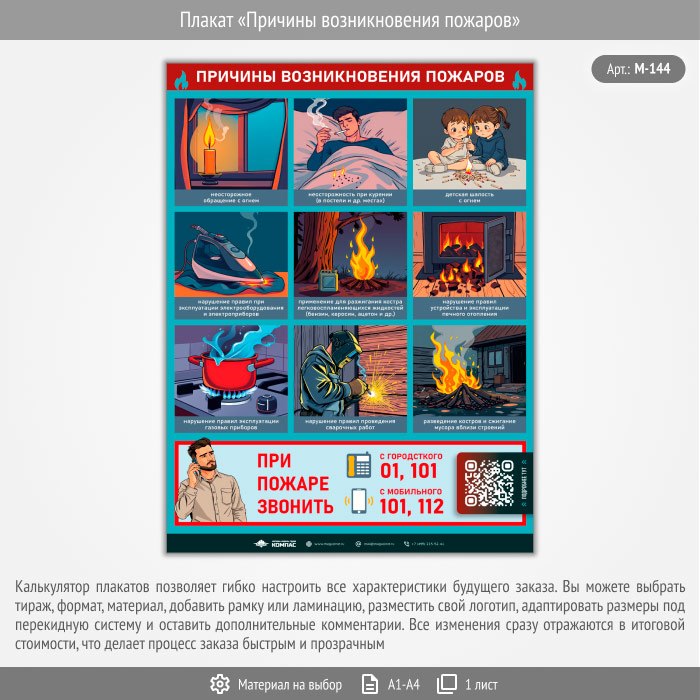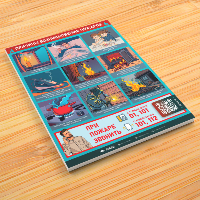 Плакат «Причины возникновения пожаров» с QR (М-144, 1 лист) в Верее купить