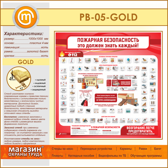 Стенд «Пожарная безопасность. Это должен знать каждый» (PB-05-GOLD) в Верее купить