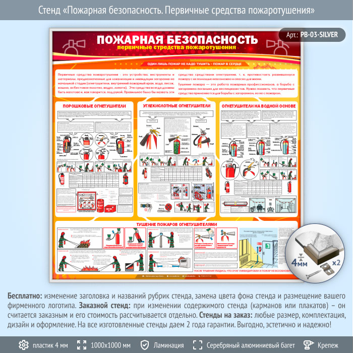 Стенд «Пожарная безопасность. Первичные средства пожаротушения» (PB-03-SILVER) в Верее купить
