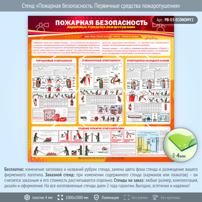 Стенд «Пожарная безопасность. Первичные средства пожаротушения» (PB-03-ECONOMY2) в Верее купить