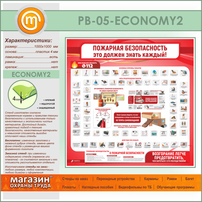 Стенд «Пожарная безопасность. Это должен знать каждый» (PB-05-ECONOMY2) в Верее купить