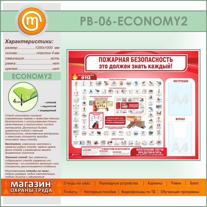 Стенд «Пожарная безопасность. Это должен знать каждый» с плоским и объемным карманами (PB-06-ECONOMY2) в Верее купить