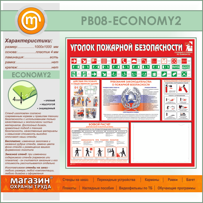 Стенд «Уголок пожарной безопасности» с карманом А3 формата (PB-08-ECONOMY2) в Верее купить