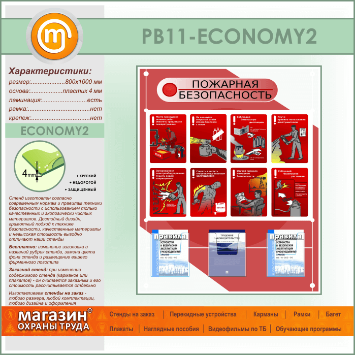 Стенд «Стенд пожарная безопасность в строительстве» с 3 объемными карманами (PB-11-ECONOMY2) в Верее купить
