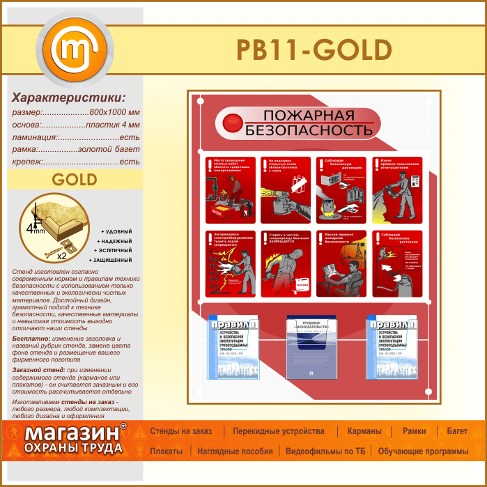 Стенд «Стенд пожарная безопасность в строительстве» с 3 объемными карманами (PB-11-GOLD) в Верее купить
