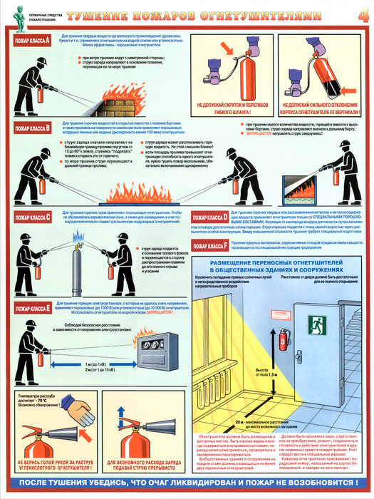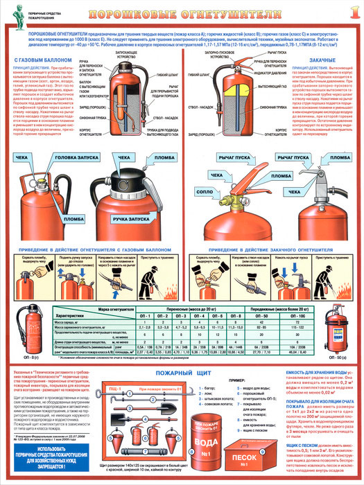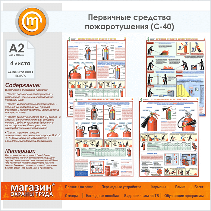 Плакаты «Первичные средства пожаротушения» (С-40, ламинированная бумага, А2, 4 листа) в Верее купить