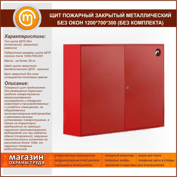 Щит пожарный закрытый металлический без окон 1200*700*300 (без комплекта) в Верее купить