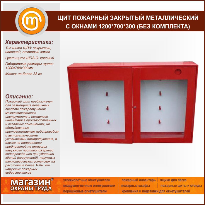 Щит пожарный закрытый металлический с окнами 1200*700*300 (без комплекта) в Верее купить
