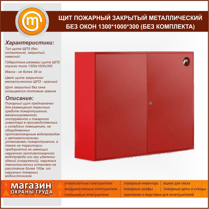 Щит пожарный закрытый металлический без окон 1300*1000*300 (без комплекта) в Верее купить