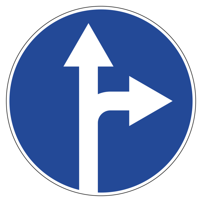 Дорожный знак 4.1.4 «Движение прямо или направо» (металл 0,8 мм, I типоразмер: диаметр 600 мм, С/О пленка: тип А инженерная) в Верее купить