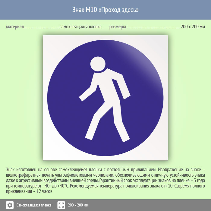 Знак M10 «Проход здесь» (пленка, 200х200 мм) в Верее купить