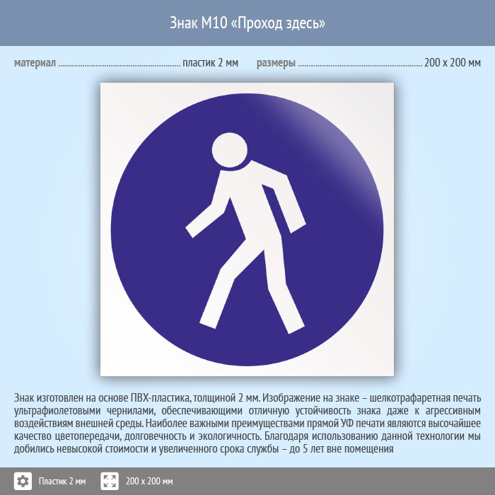 Знак M10 «Проход здесь» (пластик, 200х200 мм) в Верее купить