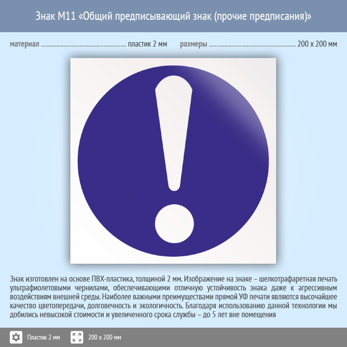 Знак M11 «Общий предписывающий знак (прочие предписания)» (пластик, 200х200 мм) в Верее купить