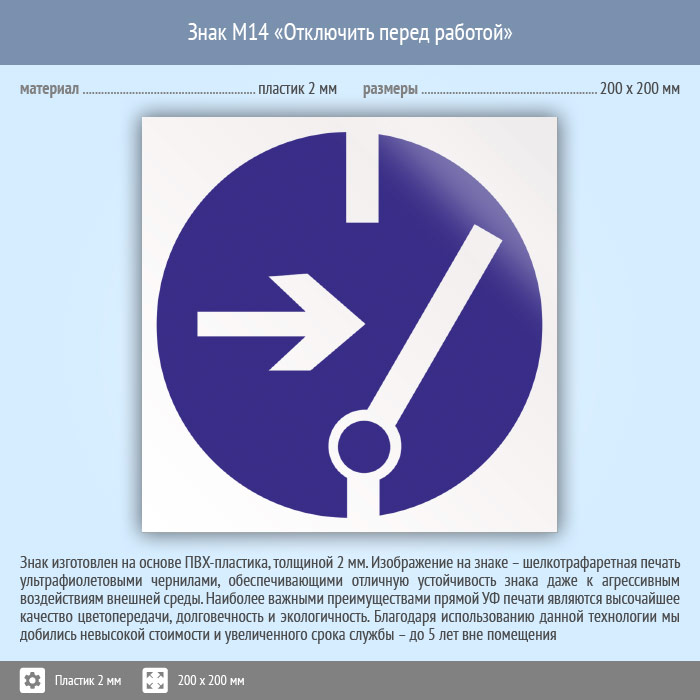 Знак M14 «Отключить перед работой» (пластик, 200х200 мм) в Верее купить