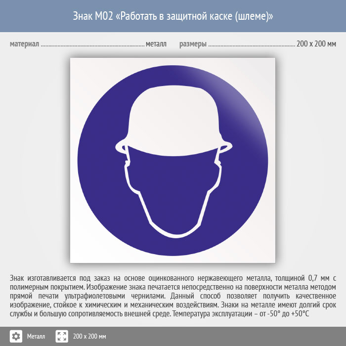 Знак M02 «Работать в защитной каске (шлеме)» (металл, 200х200 мм) в Верее купить