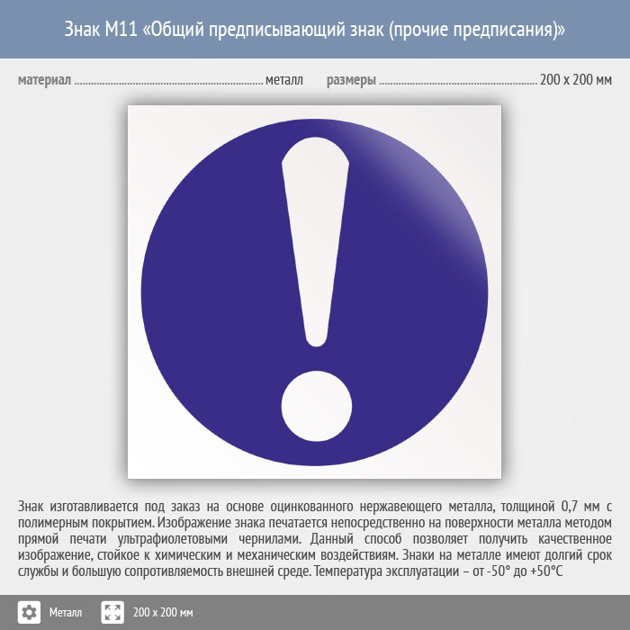 Знак M11 «Общий предписывающий знак (прочие предписания)» (металл, 200х200 мм) в Верее купить