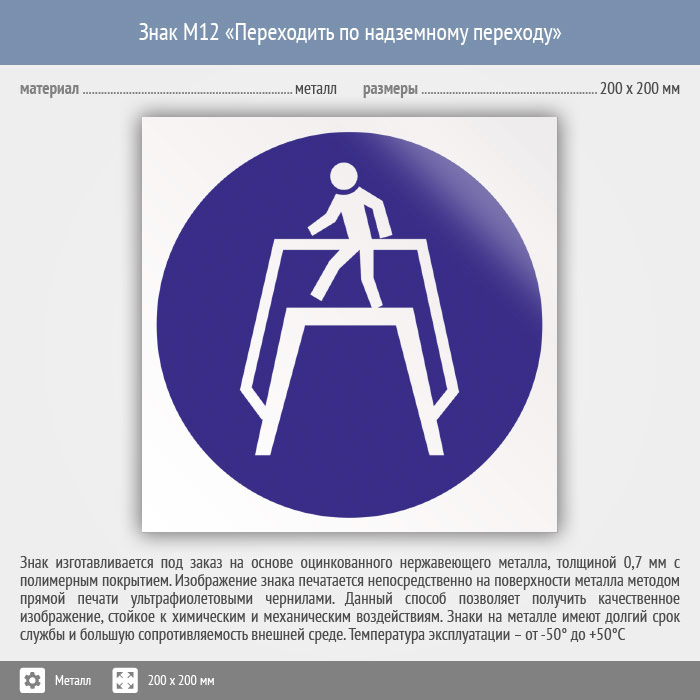 Знак M12 «Переходить по надземному переходу» (металл, 200х200 мм) в Верее купить