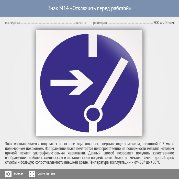 Знак M14 «Отключить перед работой» (металл, 200х200 мм) в Верее купить