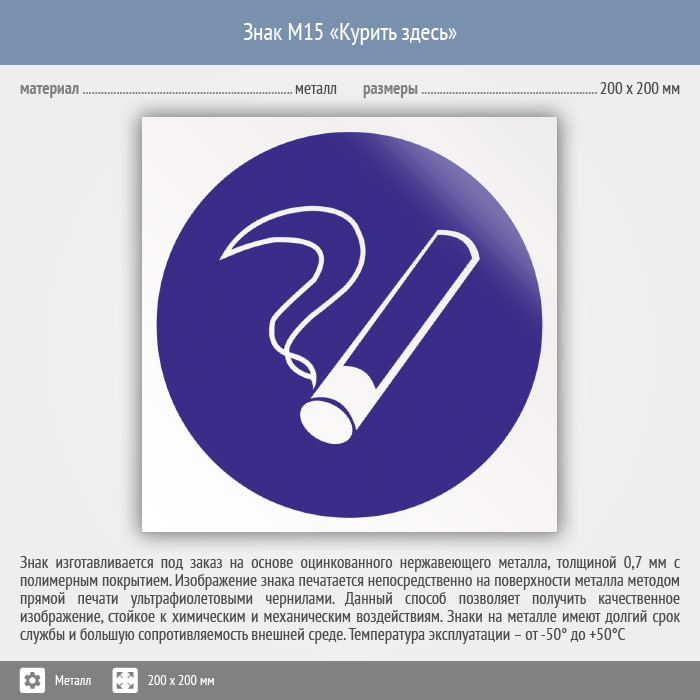Знак M15 «Курить здесь» (исключен) (металл, 200х200 мм) в Верее купить