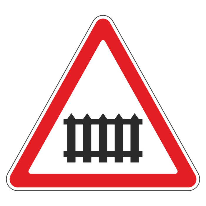 Дорожный знак 1.1 «Железнодорожный переезд со шлагбаумом» (металл 0,8 мм, III типоразмер: сторона 1200 мм, С/О пленка: тип А коммерческая) в Верее купить
