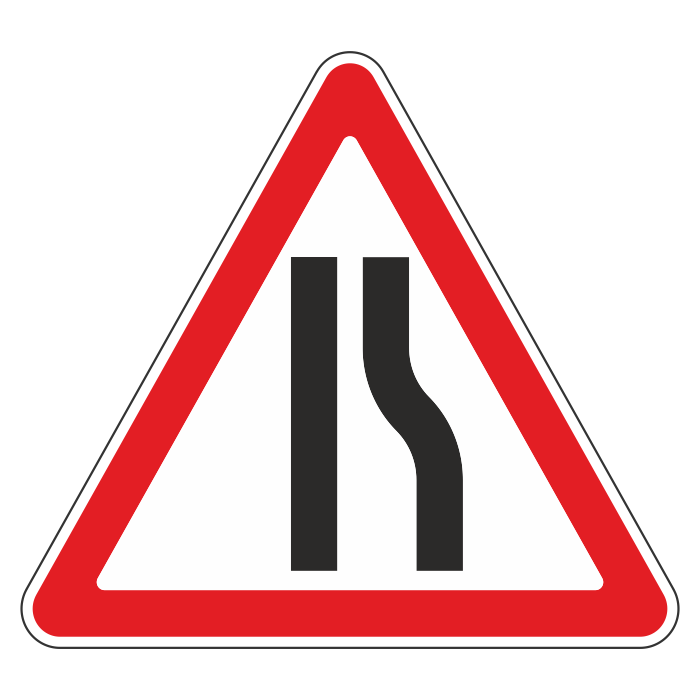 Дорожный знак 1.20.2 «Сужение дороги» (металл 0,8 мм, II типоразмер: сторона 900 мм, С/О пленка: тип А инженерная) в Верее купить