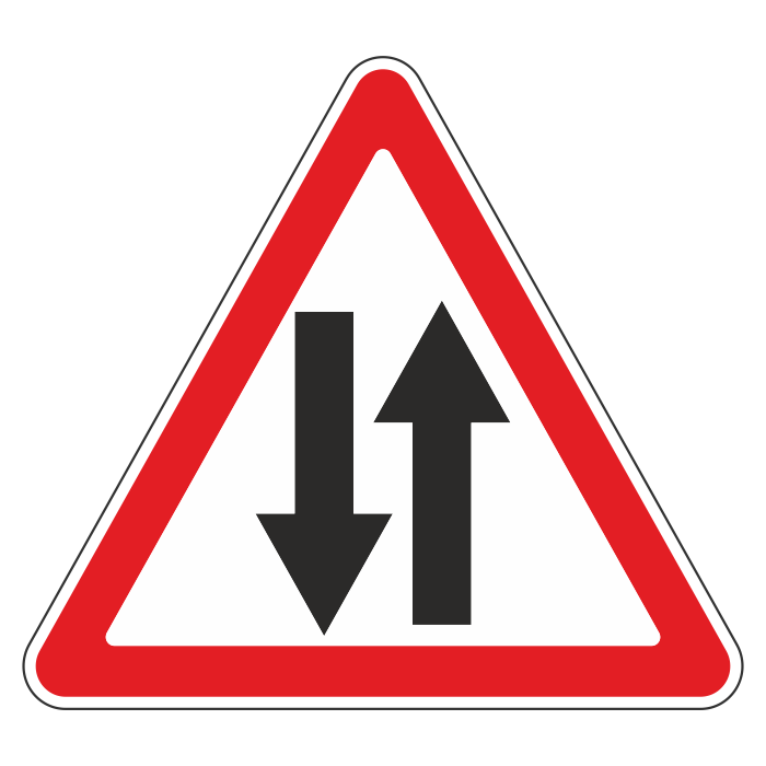 Дорожный знак 1.21 «Двустороннее движение» (металл 0,8 мм, II типоразмер: сторона 900 мм, С/О пленка: тип В алмазная) в Верее купить