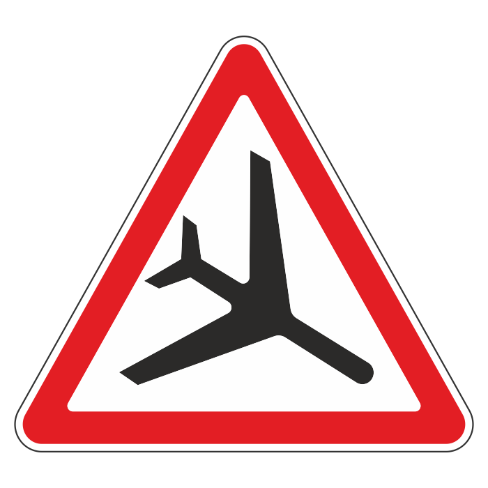 Дорожный знак 1.30 «Низколетящие самолеты» (металл 0,8 мм, II типоразмер: сторона 900 мм, С/О пленка: тип В алмазная) в Верее купить